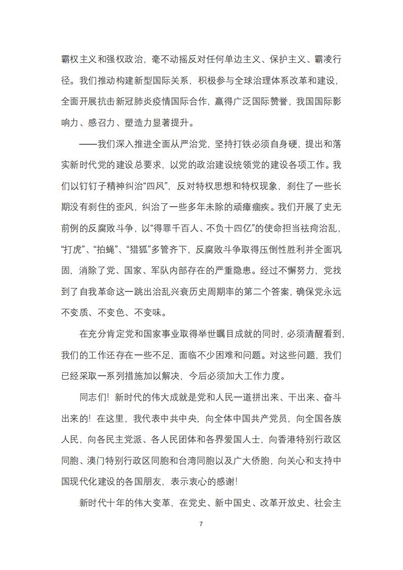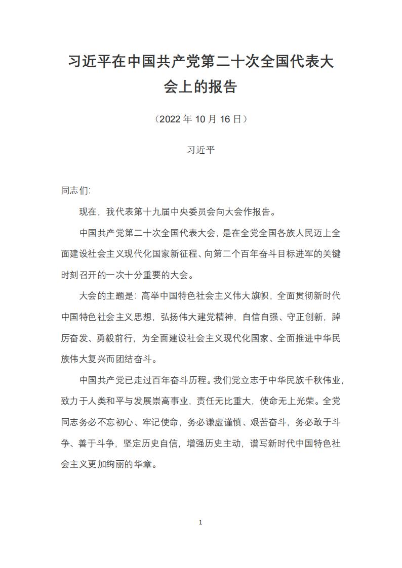 習(xí)近平在中國共產(chǎn)黨第二十次全國代表大會上的報告